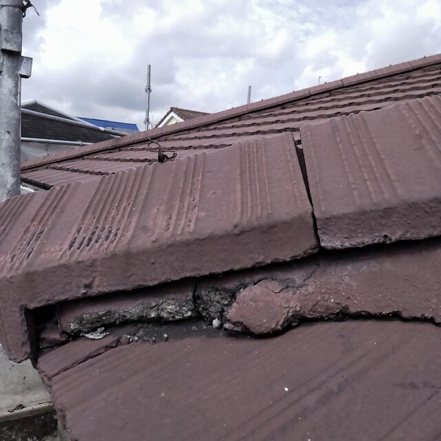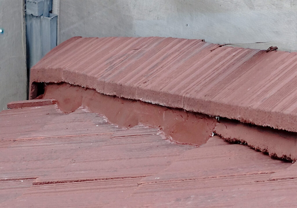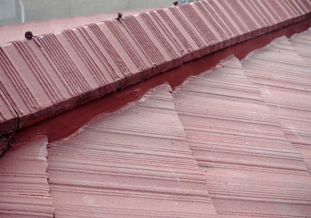 棟瓦の下部がきれいに補修され、剥がれていた部分が新しい面戸材でしっかりと埋められています。仕上がりが美しくなり、防水性・耐久性が向上しています。