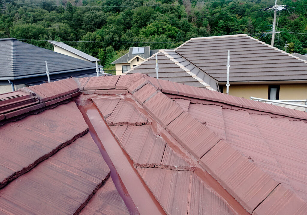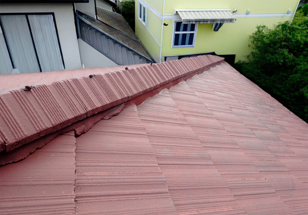 傷んだ屋根の棟(むね)と、色褪せた外壁。実はこれ、見た目の問題だけではありません。