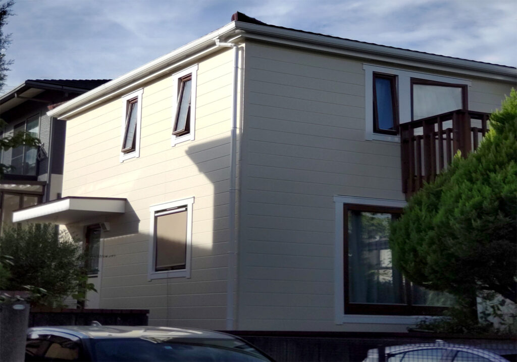 O様邸では、雨水の侵入路となる棟の隙間を完全に封鎖し、さらに家全体を包む外壁に高耐久のバリアを再構築しました。
